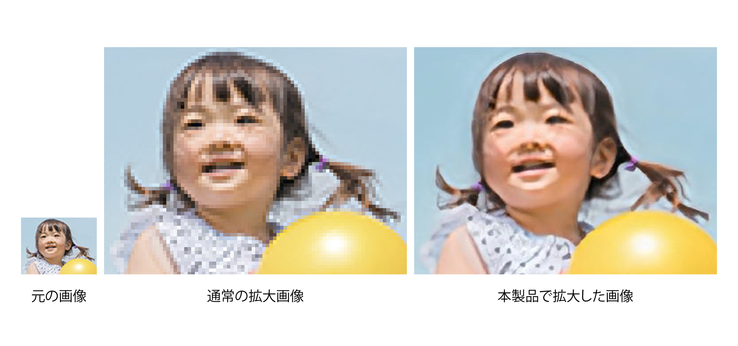 AIが画像を拡大する際にアップスケール(解像度を上げる)し、さらにJPEG形式で発生するノイズを除去して、鮮明な画像に仕上げます。
