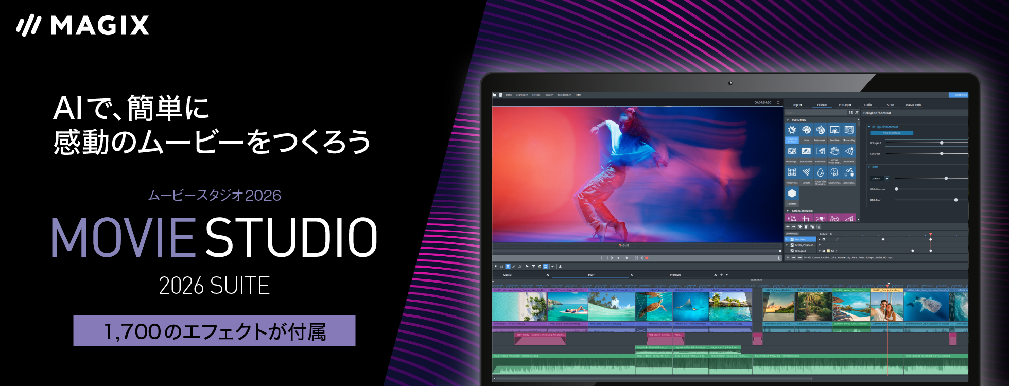 「Movie Studio 2026」シリーズは、初めてでも使いやすい動画編集ソフトです。