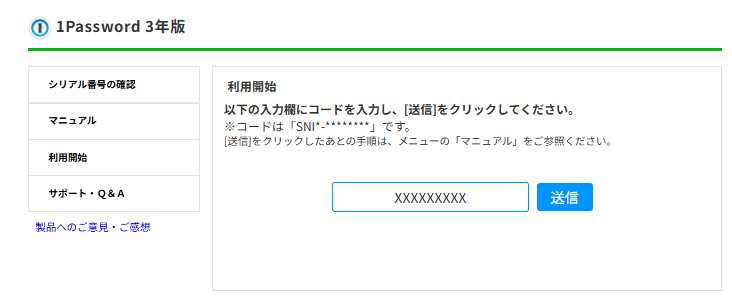 ②マイページ→「シリアル番号の確認」でコード(SNI/SNFで始まる)をコピー