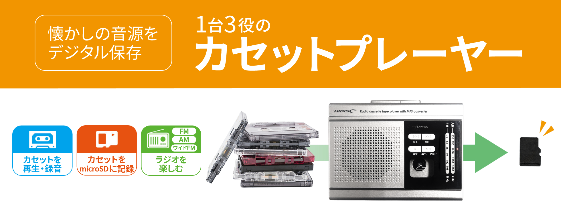 • 商品名HIDISC MP3変換/ラジオ機能付きカセットプレイヤー