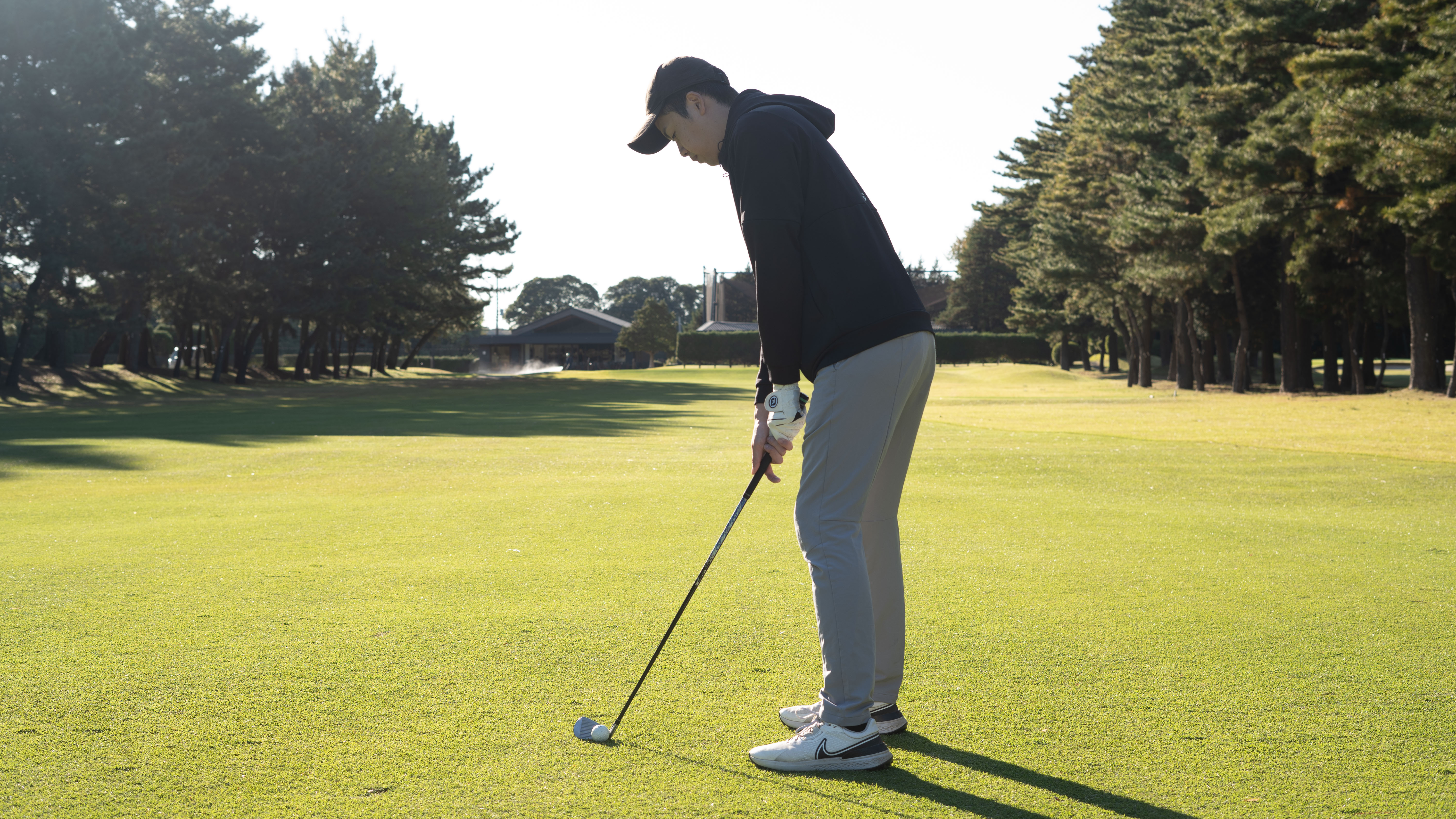 体がボールに近づきすぎる(前傾が崩れる) スイング中に体が前に動いてしまうと、自然とボールに対して近づきすぎ、結果的にクラブがヒール側でボールを捉えてしまいます。これは「前傾角度」が崩れることが原因で、初心者にありがちなミスです。