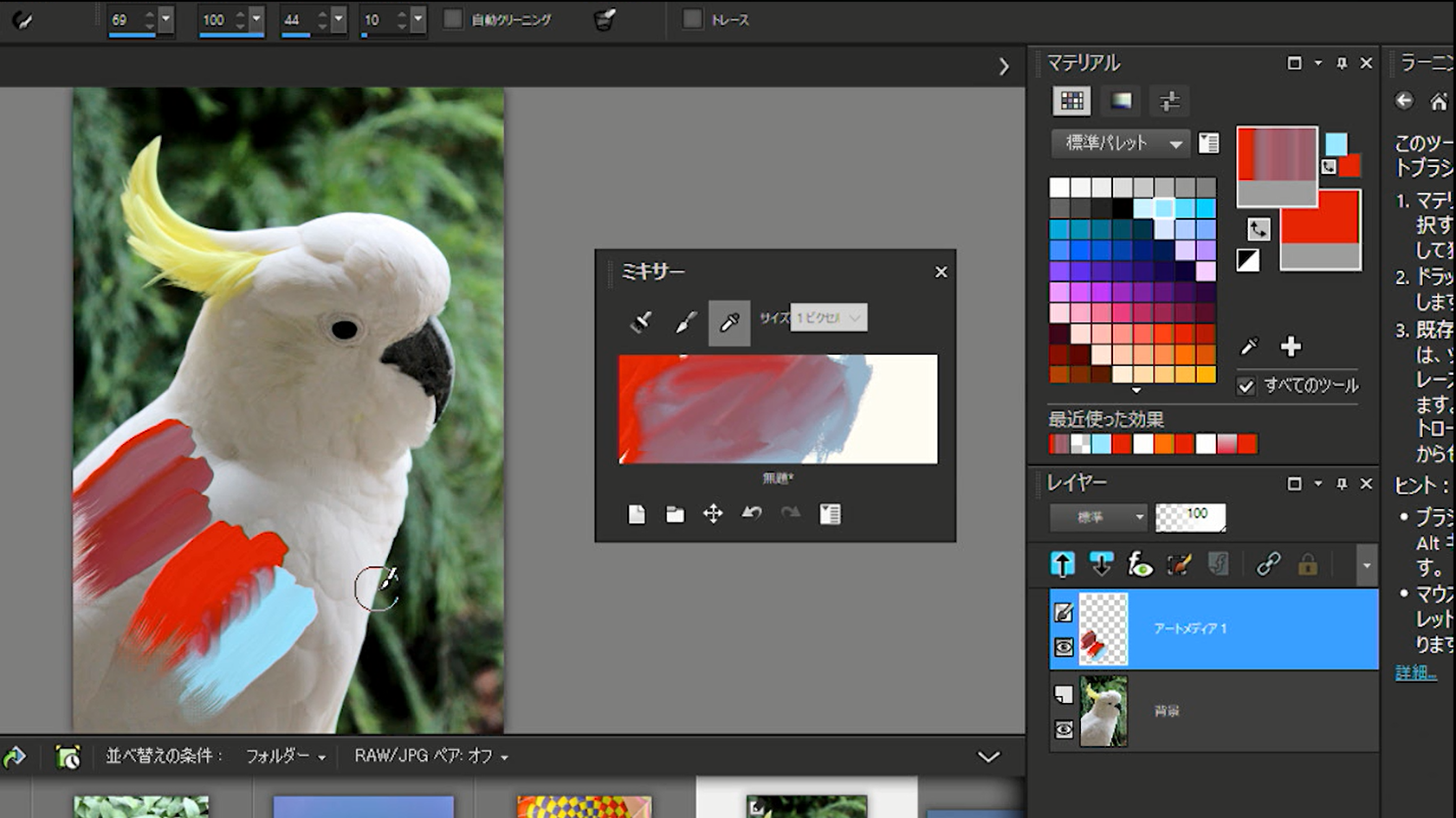 色やグラデーションを設定するマテリアルパレットの使い方がわかります。