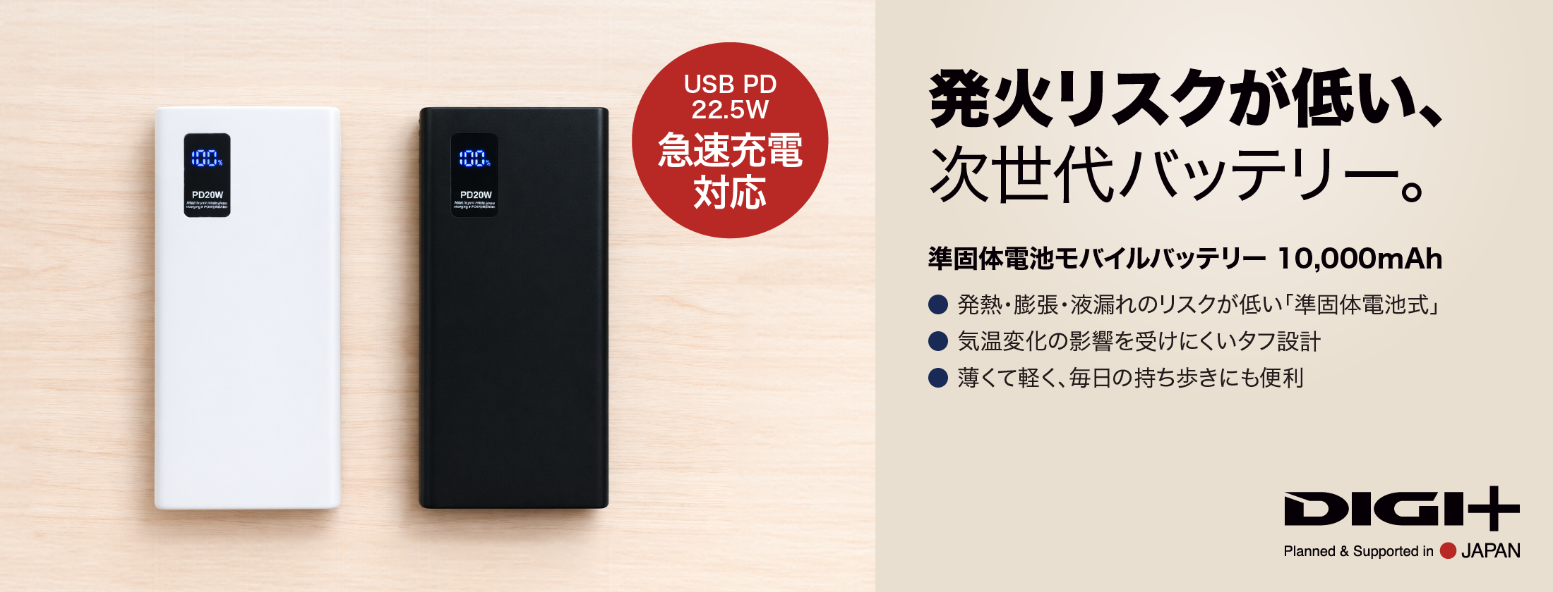 DIGI+準固体電池モバイルバッテリー(黒) DGP-SSMB01-BK