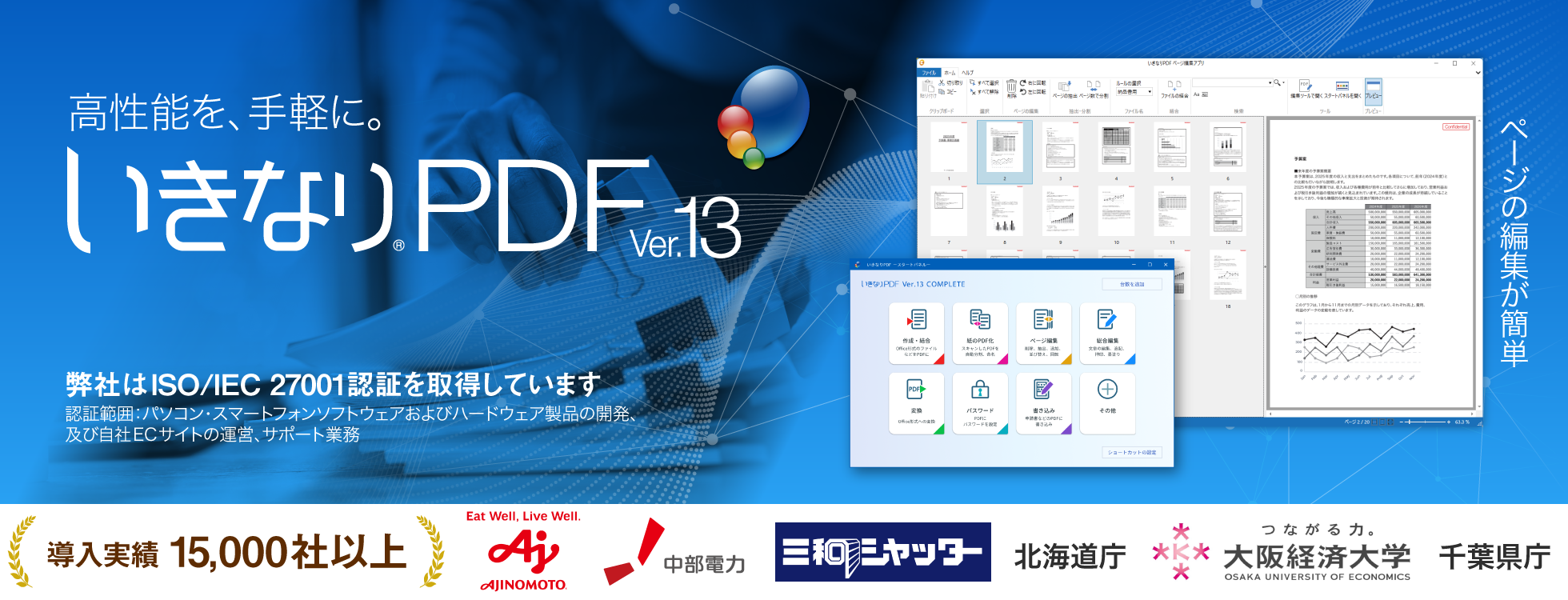 PDFの編集、作成、ページの並び替えなど、業務に役立つ機能を1つにまとめたオールインワンソフトです。