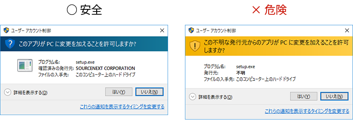 動画再生のためのリンクや手順の表示にも注意が必要です。特に途中でWindows の警告画面が表示された場合は、ウイルス感染への誘導の危険性があります。通常、単に動画を再生するだけで、「セキュリティの警告」が表示されるようなことはありません。先に進まないようにしましょう。