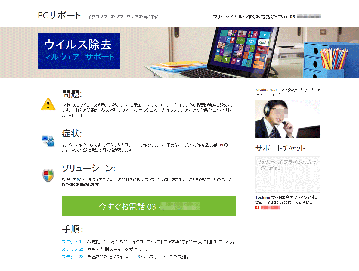 本件はサポート詐欺とも言われ、本ブログでも何度か手口を