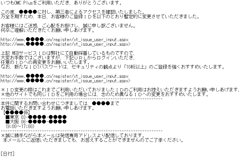 【重要:必ずお読みください】 OMC Plus ご登録確認 [日時]
