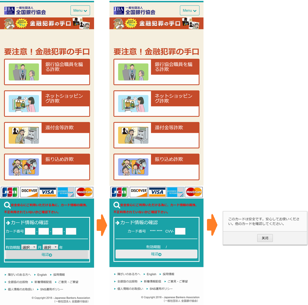 「全国銀行協会」を騙ったフィッシングサイトが確認されたため、フィッシング対策協議会が注意を呼びかけています。偽のWebサイトへ誘導して口座情報を入力させようとするものですのでご注意ください。
