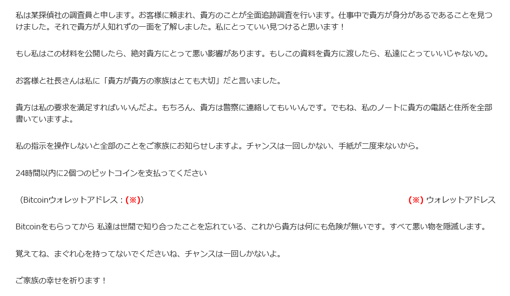 日本サイバー犯罪対策センター(JC3)が、送金を迫るメールへの注意を呼びかけています。仮想通貨の支払などは行わないようご注意ください