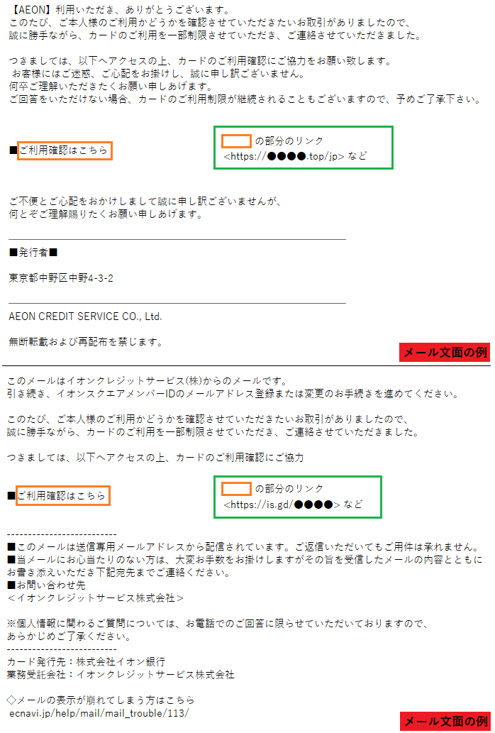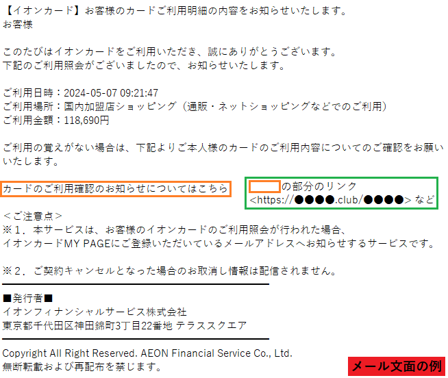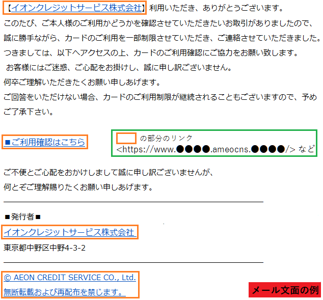 【緊急の連絡 】イオンカード ご利用確認のお願い