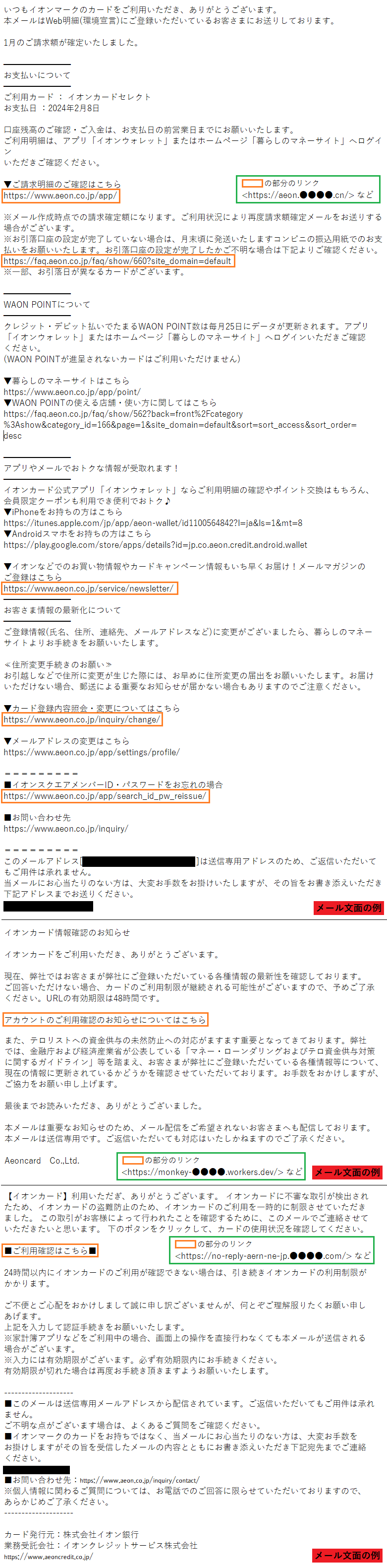 【イオンカード】お客様のカードご利用明細の内容をお知らせいたします