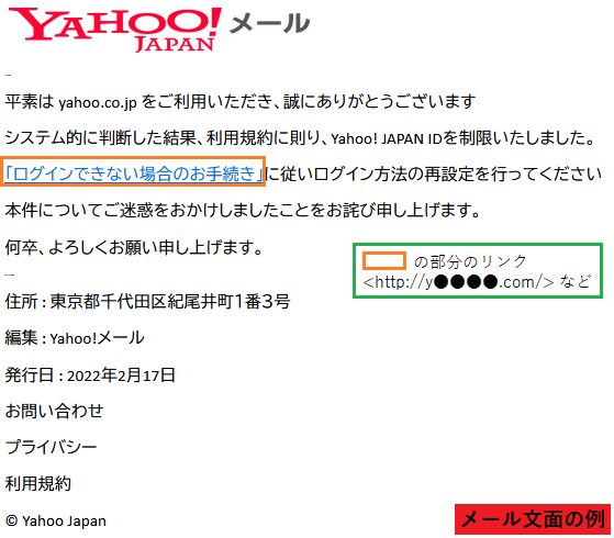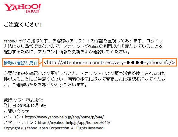 「Yahoo! JAPAN」を騙ったフィッシング詐欺が増加していると、フィッシング対策協議会やJC3が注意を呼びかけています。偽のwebサイトへ誘導して個人情報やクレジットカード情報などを入力させようとするものですので、ご注意ください。