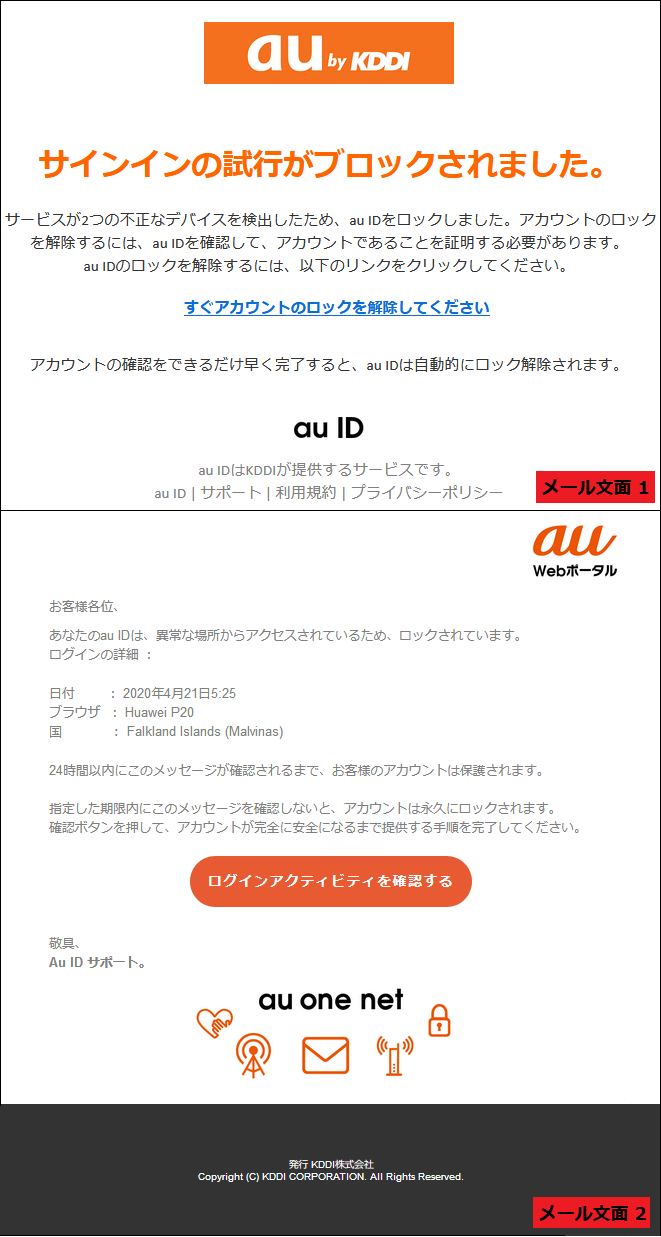 【au ID サポート】あなたのIDはロックされています。