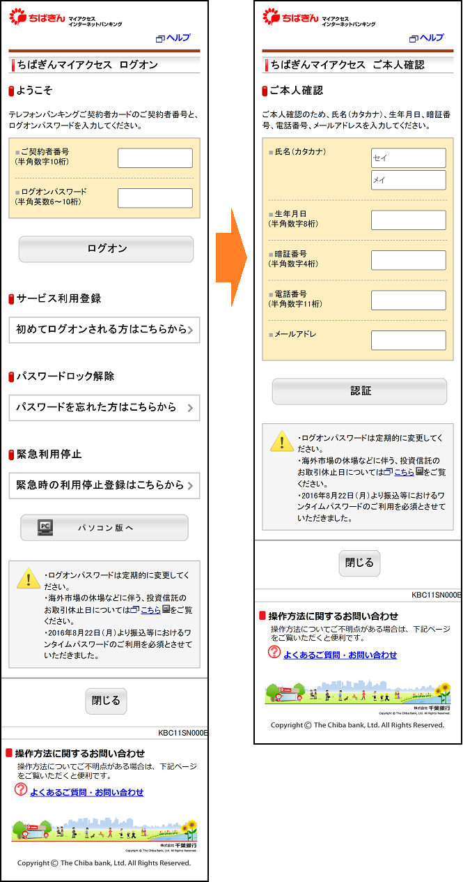 【千葉銀行】ご利用確認