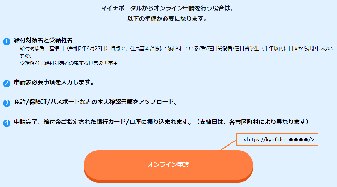 新型コロナウイルスに関する特別定額給付金の申請が