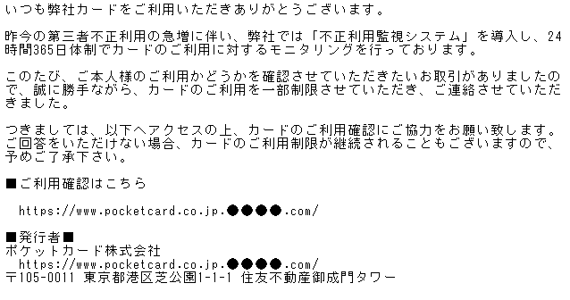 <重要>【POCKETCARD】ご利用確認のお願い