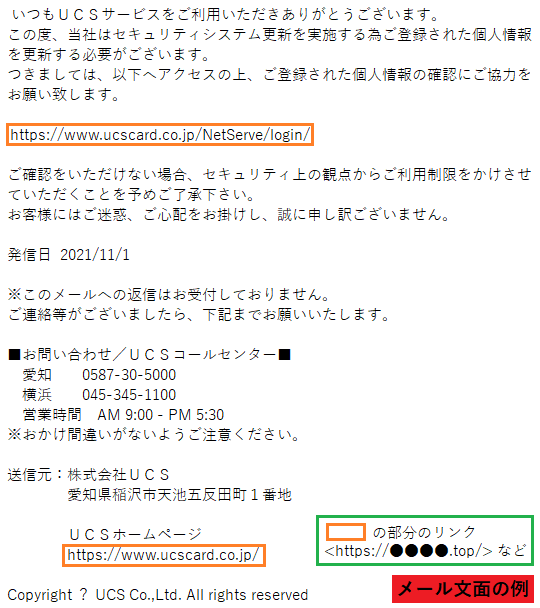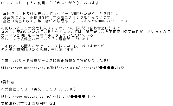 UCSカード株式会社から緊急のご連絡