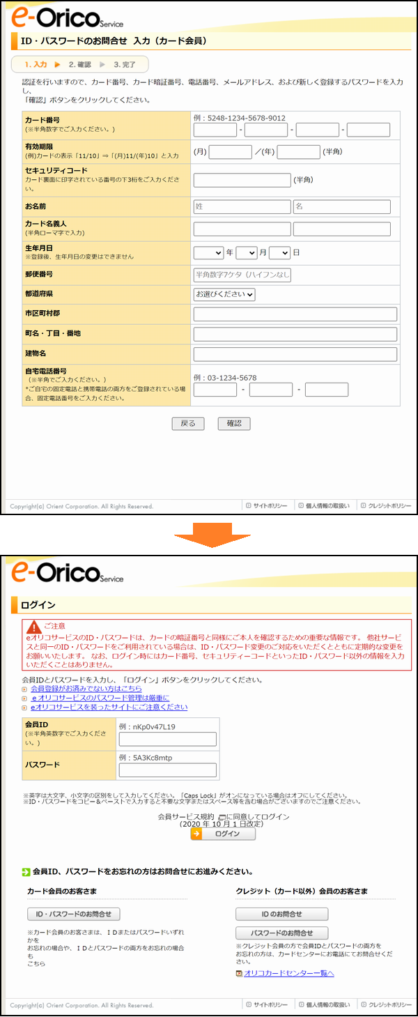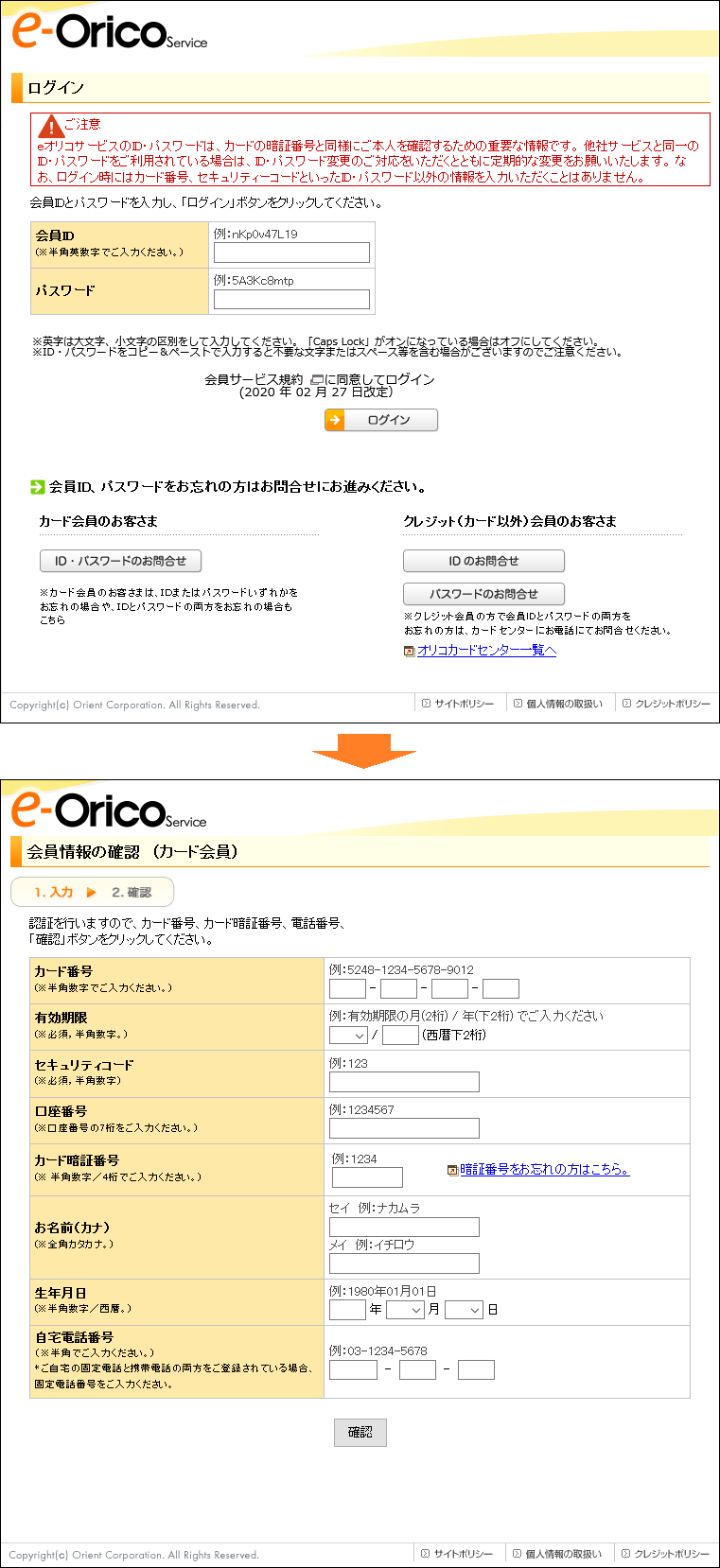 「Oricoカード」ご利用環境確認用ワンタイムURLのお知らせ