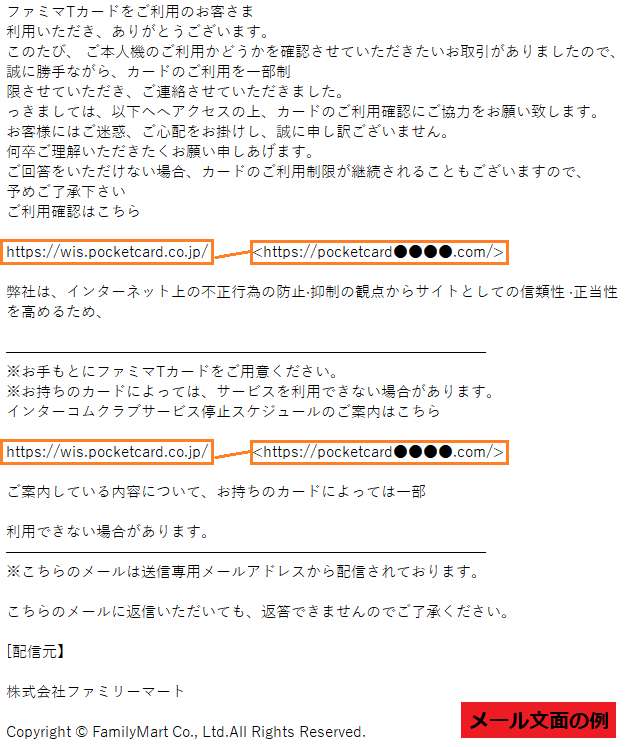 【重要】FamiPay からの緊急の連絡 [メールコード ●●●●]