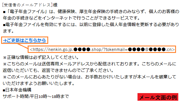 「日本年金機構」を騙ったフィッシング詐欺が増加していると、フィッシング対策協議会が注意を呼びかけています。偽のwebサイトへ誘導して以下の情報を入力させようとするものですのでご注意ください。