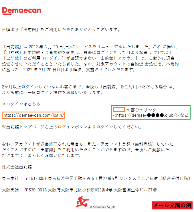 「出前館」を騙ったフィッシング詐欺が増加していると、フィッシング対策協議会が注意を呼びかけています。偽のwebサイトへ誘導して個人情報やクレジットカード情報などを入力させようとするものですので、ご注意ください。