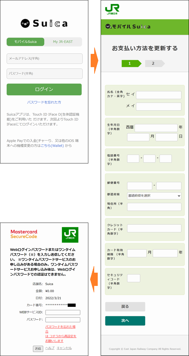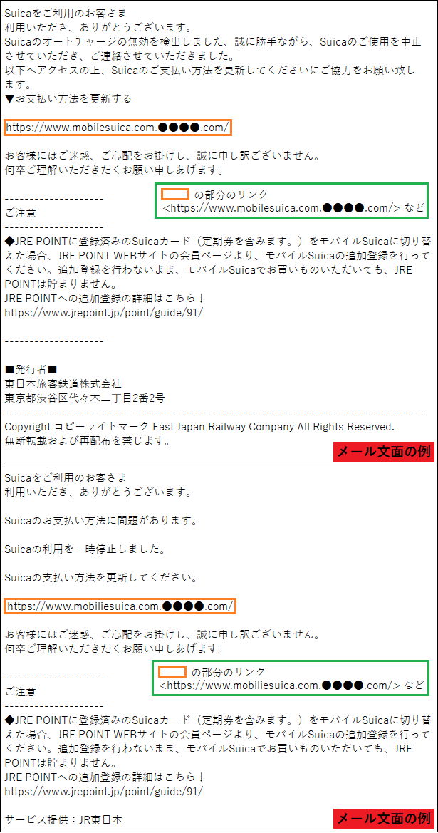 「Suica (JR東日本)」を騙ったフィッシング詐欺が増加していると、フィッシング対策協議会が注意を呼びかけています。偽のwebサイトへ誘導して以下の情報を入力させようとするものですのでご注意ください。