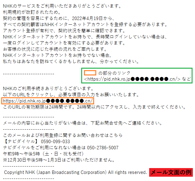 「NHK」を騙ったフィッシング詐欺が増加していると、フィッシング対策協議会が注意を呼びかけています。偽のwebサイトへ誘導して以下の情報を入力させようとするものですのでご注意ください。