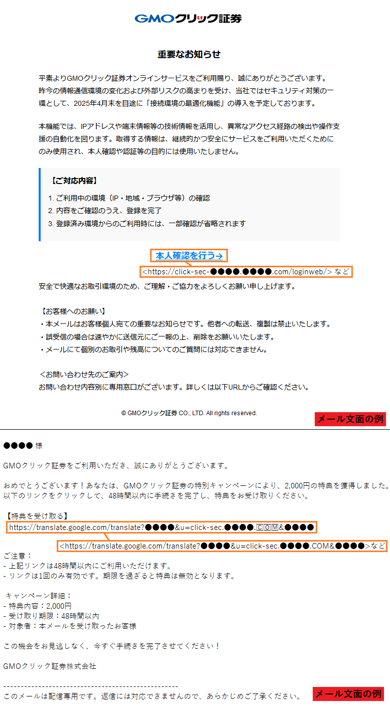 ※上記以外の類似フィッシングサイトが公開される可能性もあります。