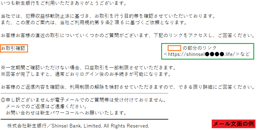 【新生銀行】必ずご回答ください/お客様の直近の取引における重要な確認について