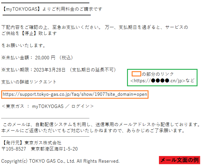 偽のwebサイトへ誘導してログイン情報などを入力させようとするものですのでご注意ください。