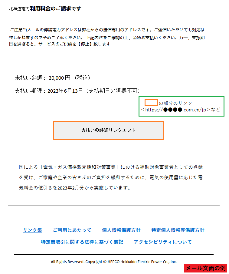 北海道電力利用料金のご請求です【重要なお知らせ】