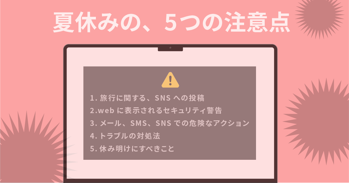 夏休みの、5つの注意点。セキュリティ面で注意すべきことを以下にまとめました。