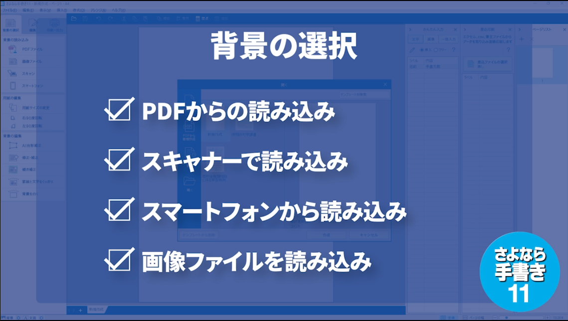 内容 ■1章 さよなら手書きでできること 1-1 さよなら手書きでできること 1-2 画面構成 ■2章 背景の選択 2-1 PDFからの読み込み 2-2 スキャナーで読み込み 2-3 スマートフォンから読み込み 2-4 画像ファイルを読み込み ■3章 編集 3-1 テキストボックスの作成 3-2 書式の設定とスタイル 3-3 ピッタリ機能 3-4 図形作成機能 ■4章 印刷と出力 4-1 印刷と出力 4-2 ファイルへの出力 ■5章 その他の便利な使い方 5-1 差込印刷 5-2 効率的な編集 5-3 背景の編集 5-4 その他の便利な入力機能 5-5 ファイルの保存とパスワードの設定